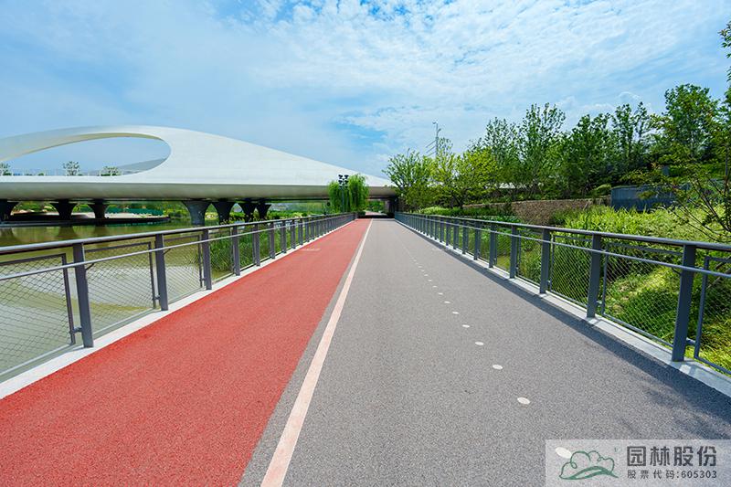 城市綠道通過鋪裝材質(zhì)區(qū)分出騎行道和跑步道。騎行區(qū)域采取瀝青材質(zhì),提高耐久度和使用壽命,有效控制成本造價(jià)。跑步道區(qū)域采用EPDM塑膠顆粒面層,提高使用舒適度,采取靚麗的色彩與騎行區(qū)域進(jìn)行區(qū)分。結(jié)合人才驛站設(shè)置瞭望臺,游人在此可小憩補(bǔ)充體力,也可登高俯瞰河道景觀。造型獨(dú)特的驛站和瞭望臺也是河道上的一處風(fēng)景。